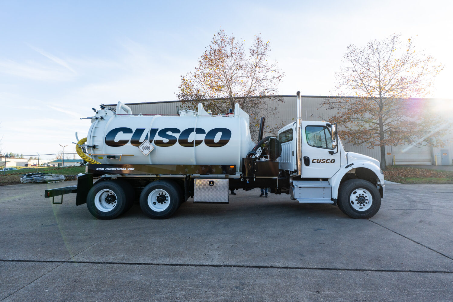 Row edge-slant Shape Decorative svg added to bottom Industrial Code Cusco builds Code trucks, not just Code tanks. Cusco’s Code units feature full 360-degree impact and rollover protection, in a package designed to provide more revenue by working longer handling hazardous loads. Request Info Benefits Powerful pump with lowest drain valve and pressure offload reduces downtime True 407/412 ASME pressure vessel tank materials & construction Close-spaced tubular rollover structures exceed requirements Recessed level nozzle for added rollover protection Robust rear bumper tested to exceed accident deflection specifications Easy bolt-off tank removal for continued use after chassis end of life Standard ground-access tank elevation prop rod for safer operation Ground-level component access for easy and safe maintenance OPTIONAL FEATURES: Stainless steel tank construction Liquid-cooled vacuum pumps Hydraulic tank vibrator Heated valves Transfer pump High pressure wash system More Info Watch Video Download Spec Sheet Real World Protection 360° Code System Take the Next Step. Request A Quote Contact Us
